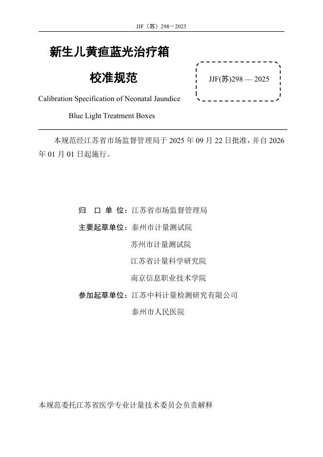 JJF(苏)298-2025 新生儿黄疸蓝光治疗箱校准规范