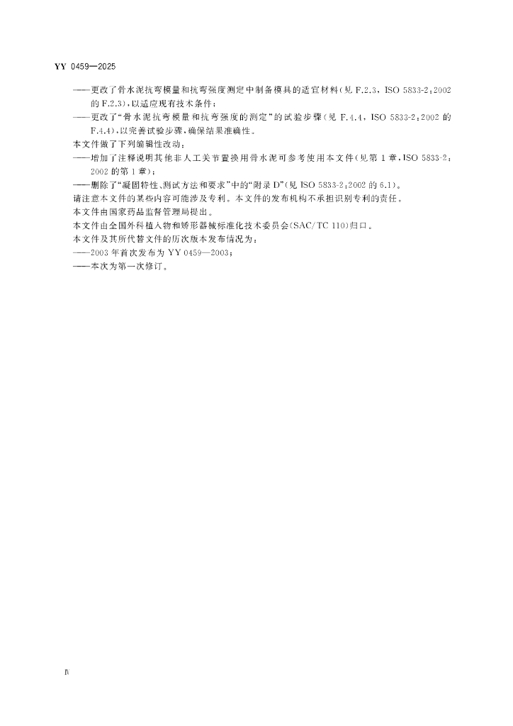 YY 0459-2025 外科植入物 丙烯酸类树脂骨水泥