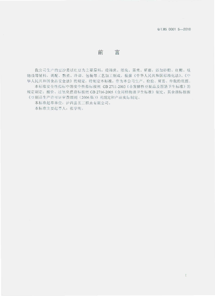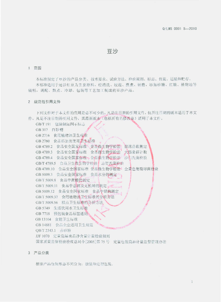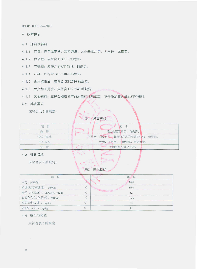 Q/LWS 0001S-2010 豆沙