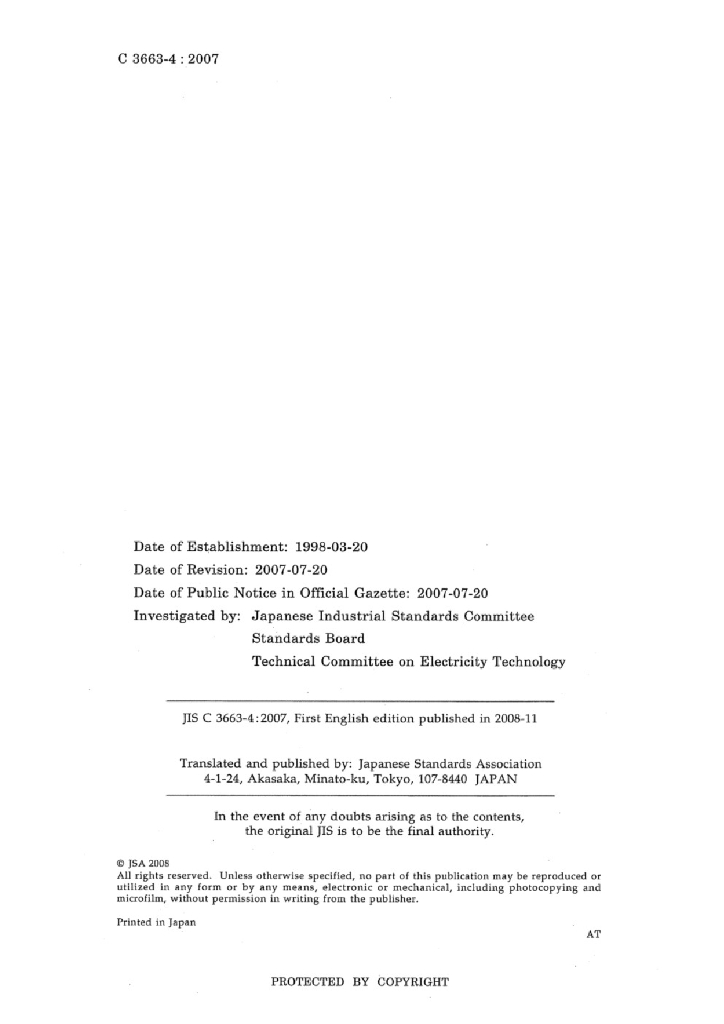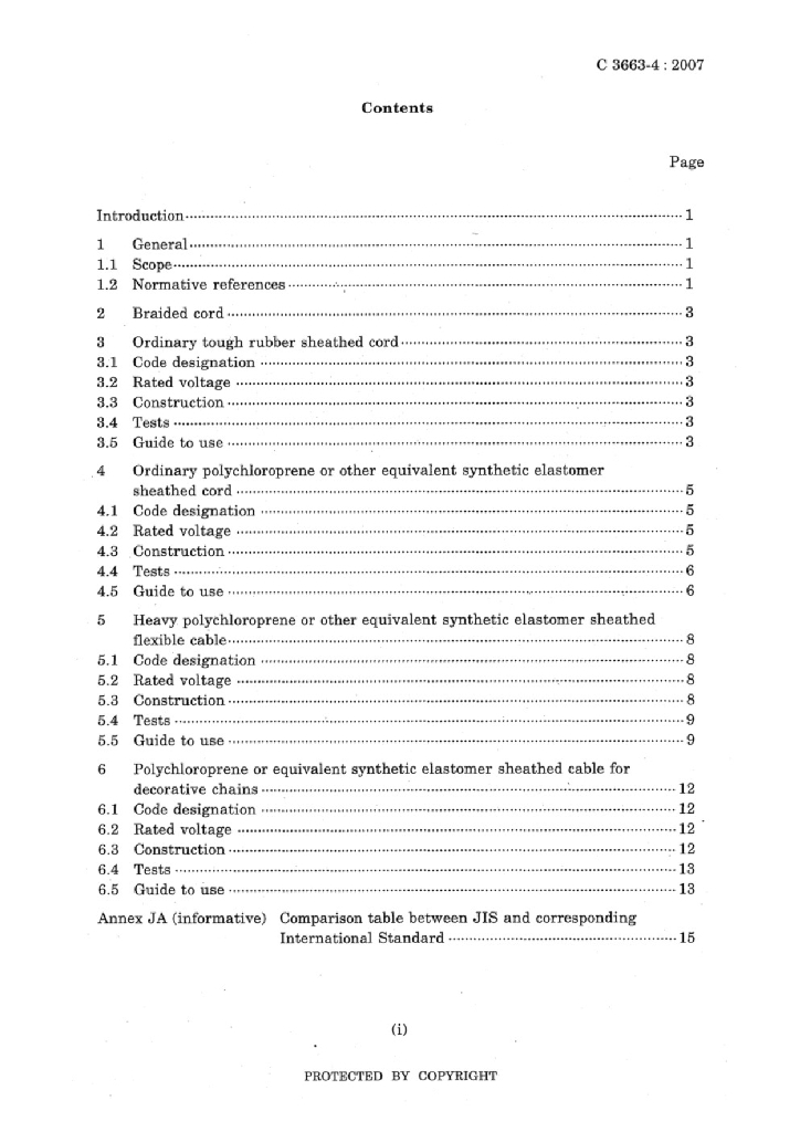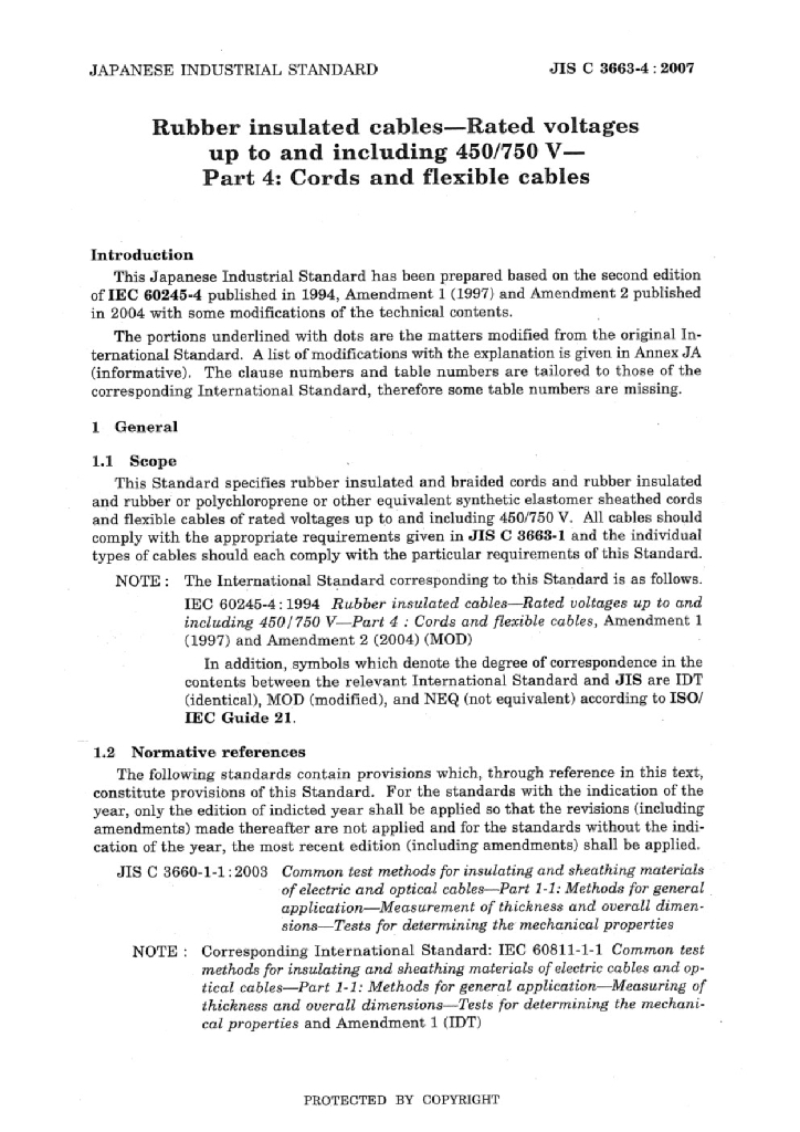 JIS C3663-4:2007 额定电压450/750V以下的橡胶绝缘电缆-第4部分 芯线和软电缆