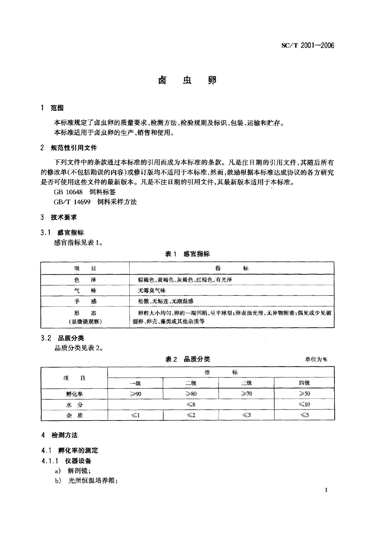 SC/T 2001-2006 卤虫卵