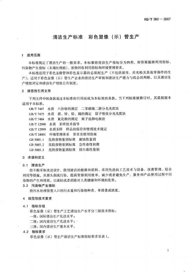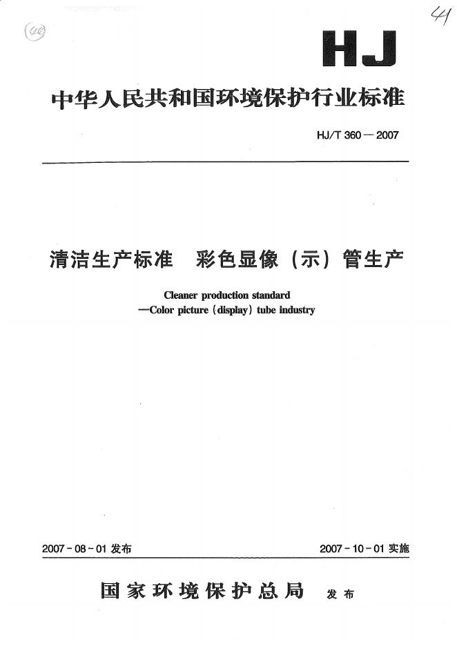 HJ/T 360-2007 清洁生产标准? 彩色显象(示)管生产