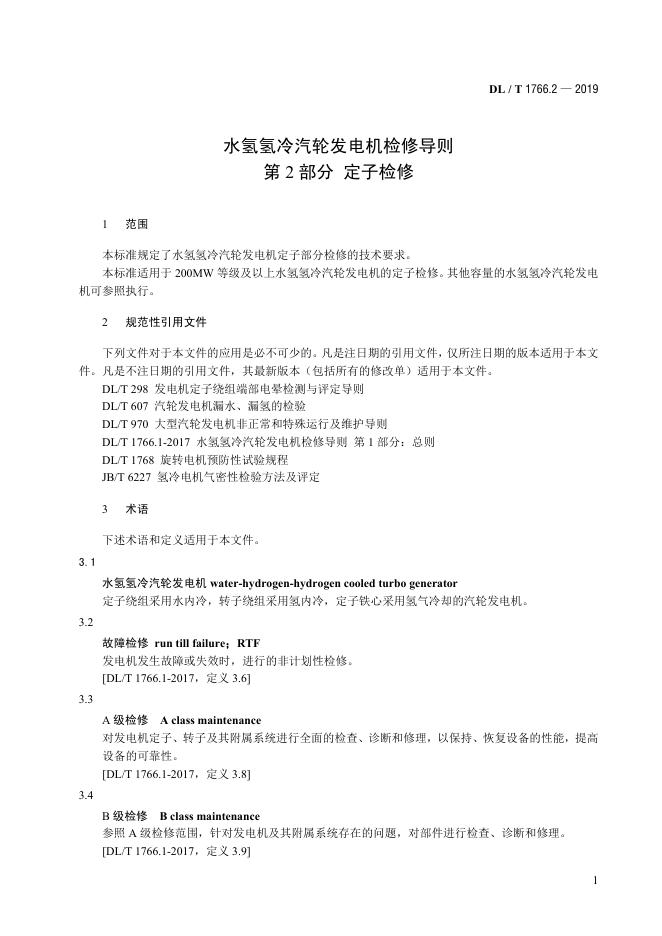 DL/T 1766.2-2019 水氢氢冷汽轮发电机检修导则 第2部分:定子检修
