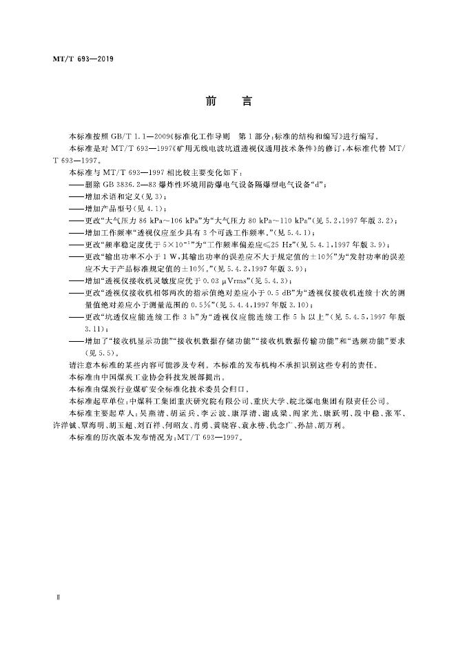MT/T 693-2019 矿用无线电波透视仪通用技术条件