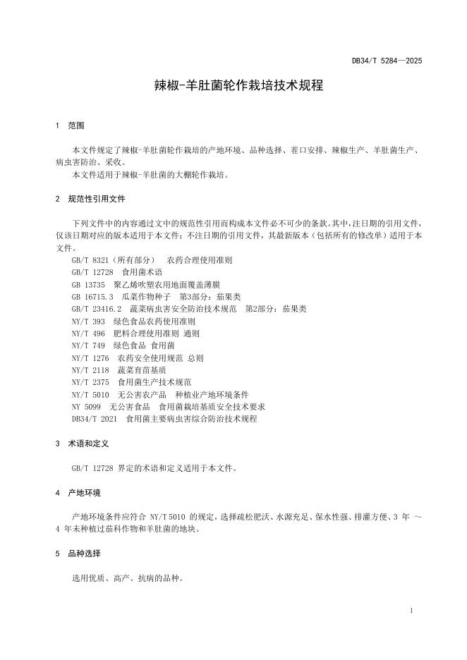 DB34/T 5284-2025 辣椒-羊肚菌轮作栽培技术规程