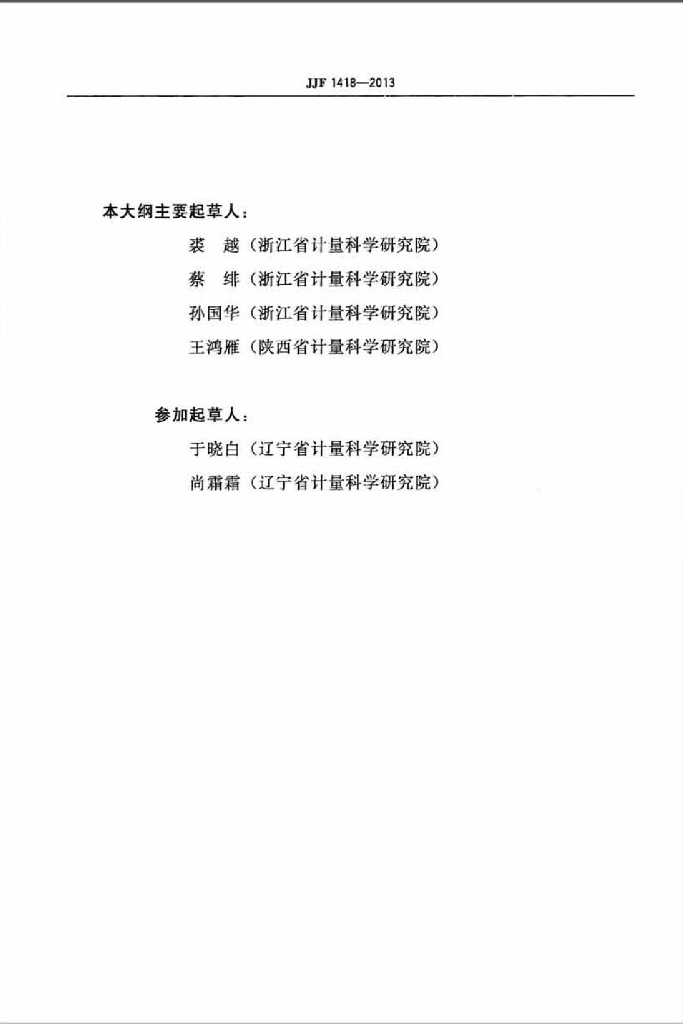 裘越(浙江省计量科学研究院)、蔡绯(浙江省计量科学研究院)、孙国华(浙江省计量科学研究院)、王鸿雁(陕西省计量科学研究院)、于晓白(辽宁省计量科学研究院)、尚霜霜(辽宁省计量科学研究院)