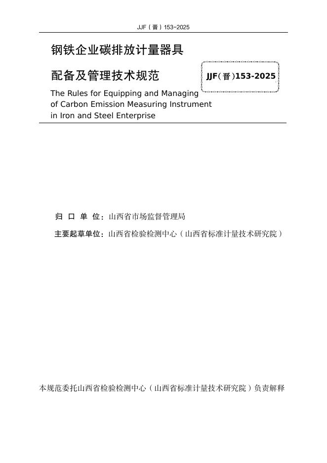 JJF(晋)153-2025 钢铁企业碳排放计量器具配备及管理技术规范