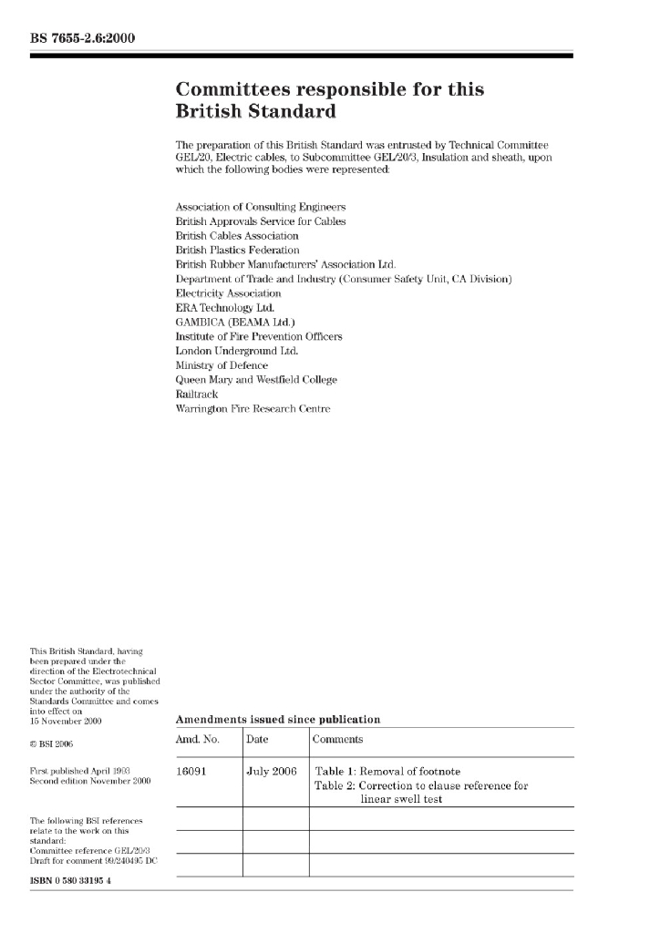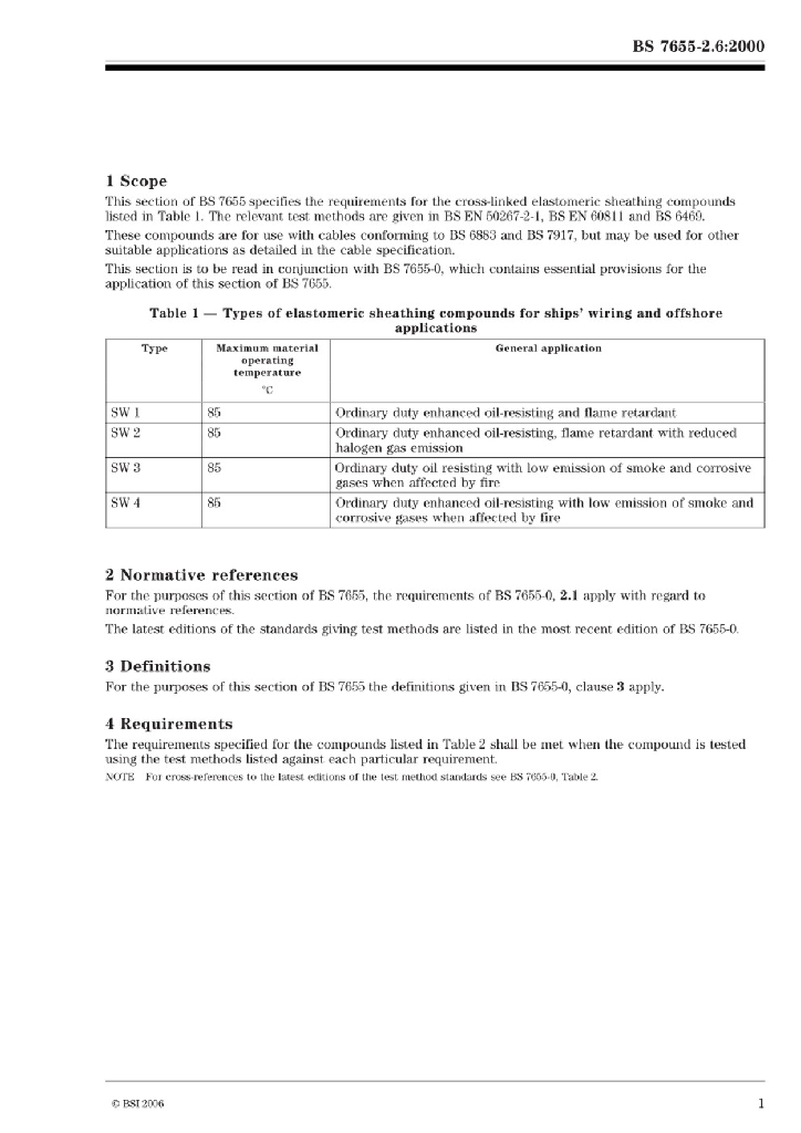 BS 7655-2.6:2000 电缆绝缘和护套材料规范 电缆绝缘和护套材料规范 第2部分:交联弹性护套化合物 第6节:船只布线和近海设备用护套化合物