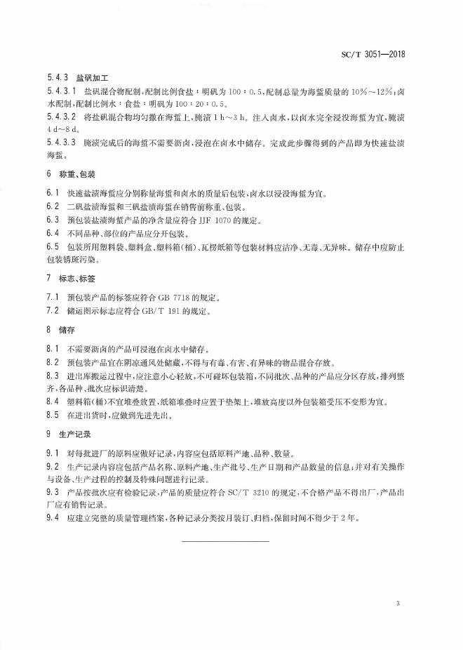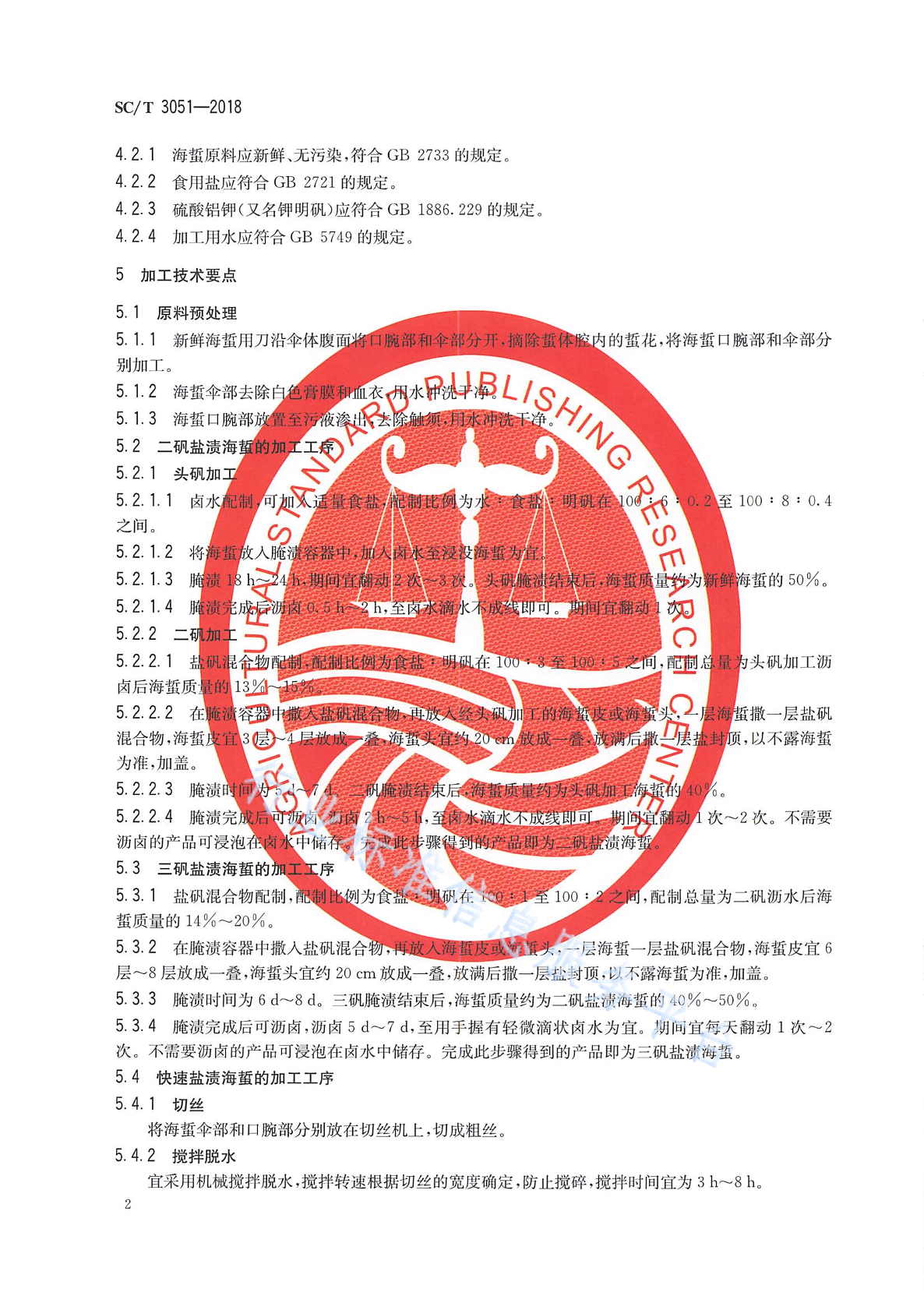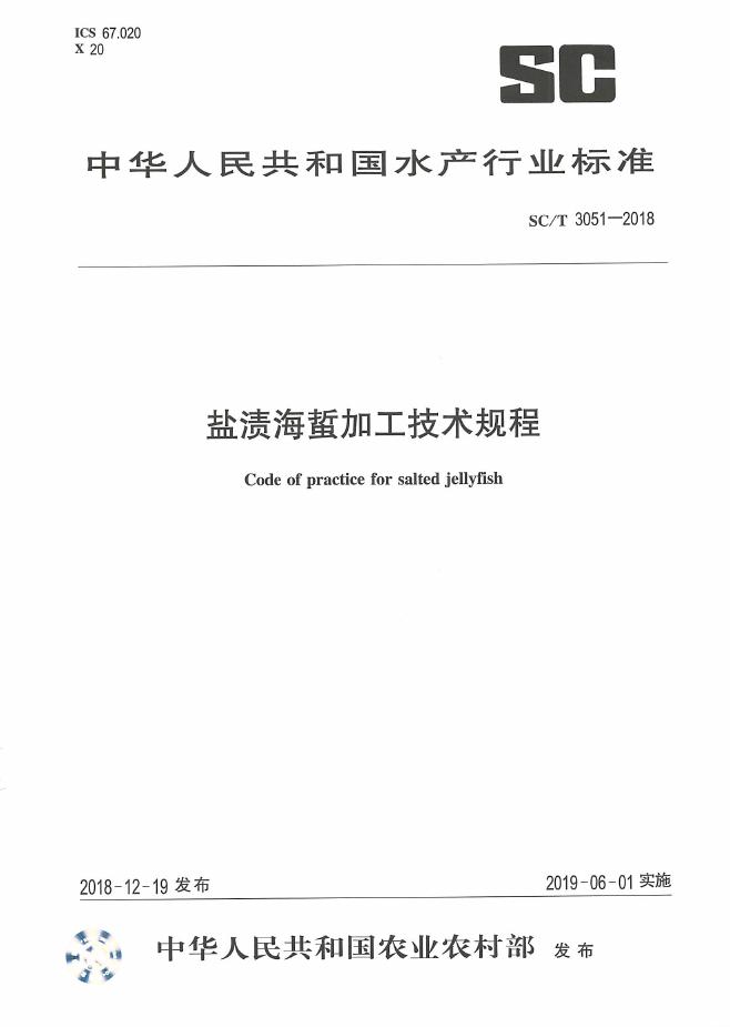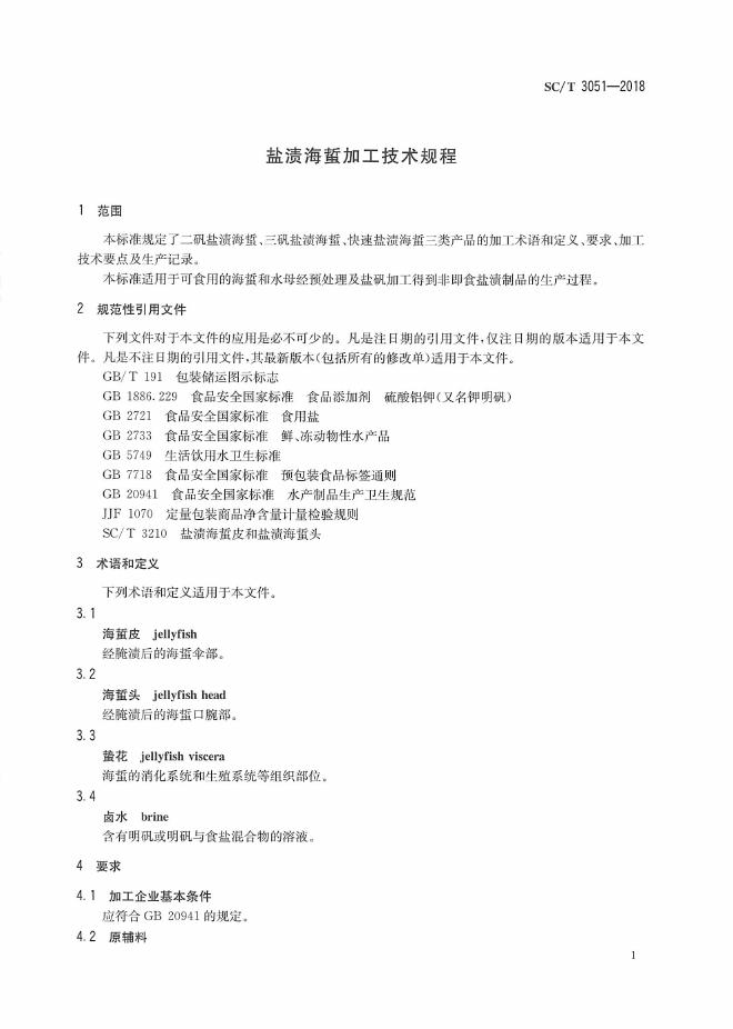SC/T 3051-2018 盐渍海蜇加工技术规程