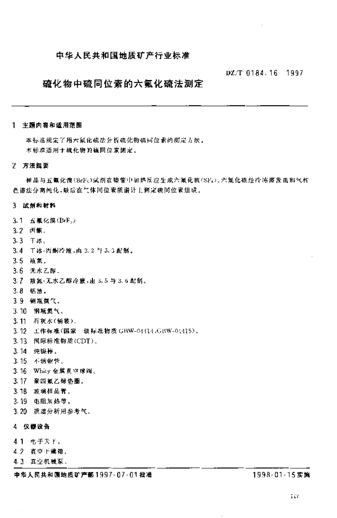 DZ/T 0184.16-1997 硫化物中硫同位素的六氟化硫法测定
