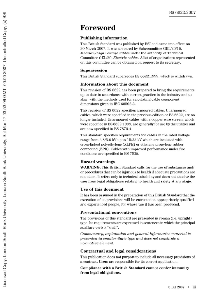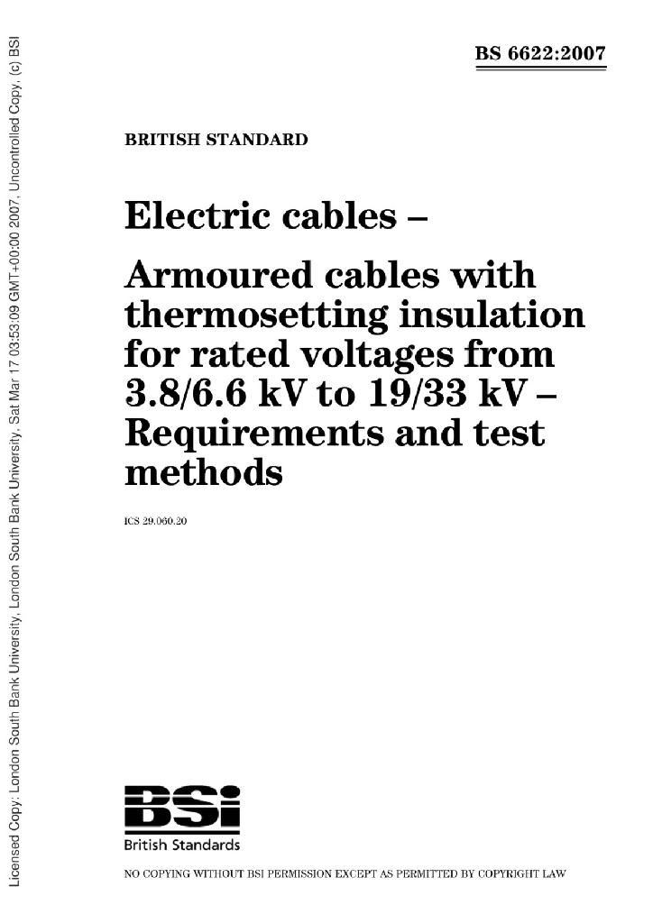 BS 6622:2007 电缆--额定电压3.8 6.6kV到19 33kV热固性绝缘铠装电缆--测试方法和要求