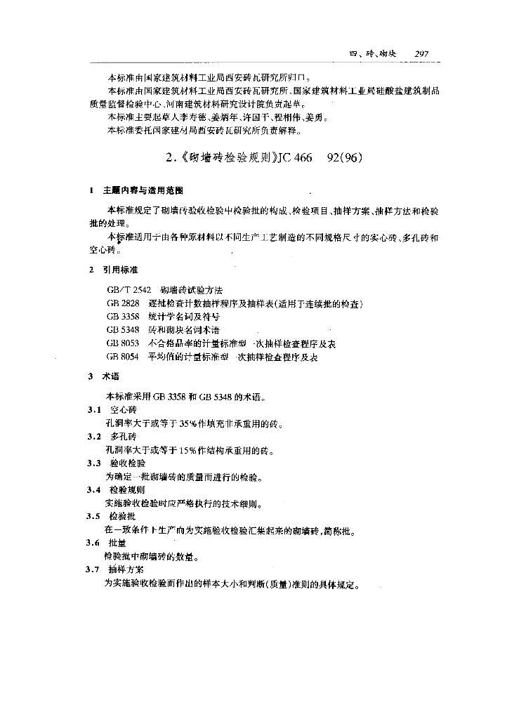 JC 466-1992(1996) 砌墙砖检验规则