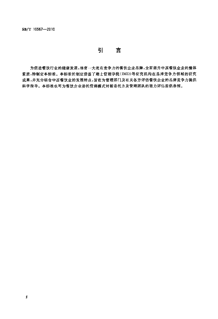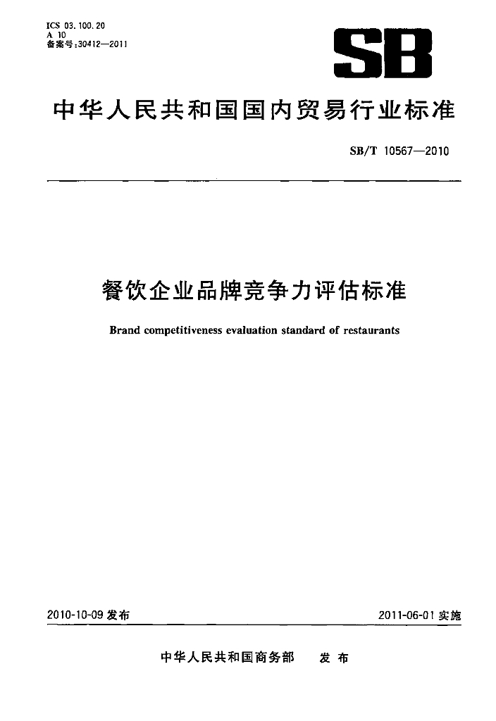 SB/T 10567-2010 餐饮企业品牌竞争力评估标准