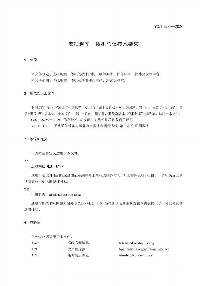 YD/T 6283-2024 虚拟现实一体机总体技术要求
