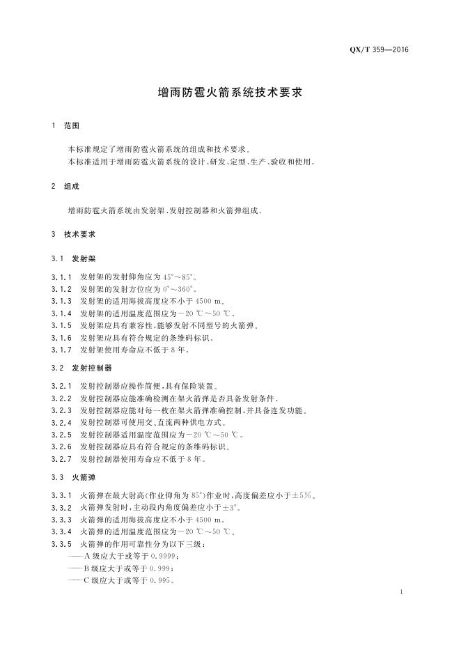 QX/T 359-2016 增雨防雹火箭系统技术要求