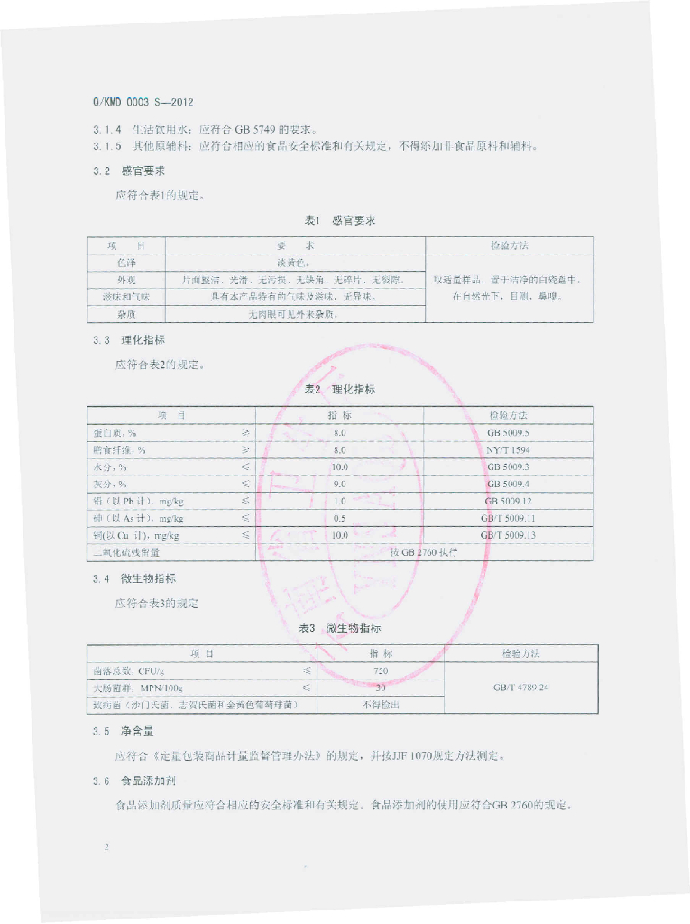 Q/KMD 0003S-2012 玛咖片(压片糖果)