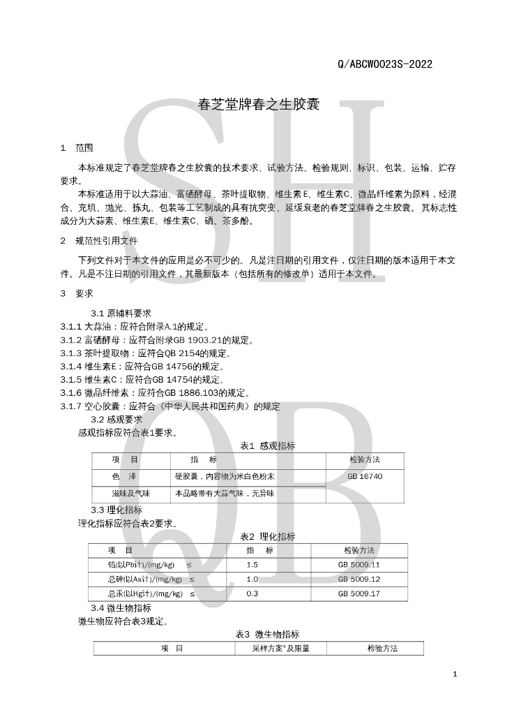 Q/ABCW 0023S-2022 春芝堂牌春之生胶囊