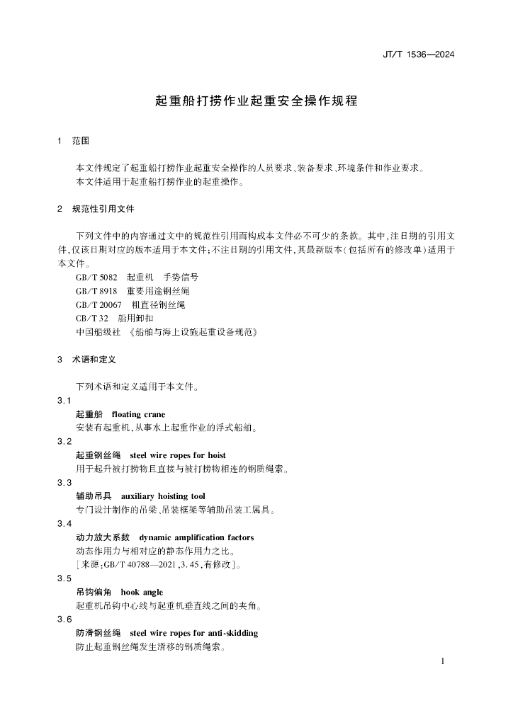 JT/T 1536-2024 起重船打捞作业起重安全操作规程