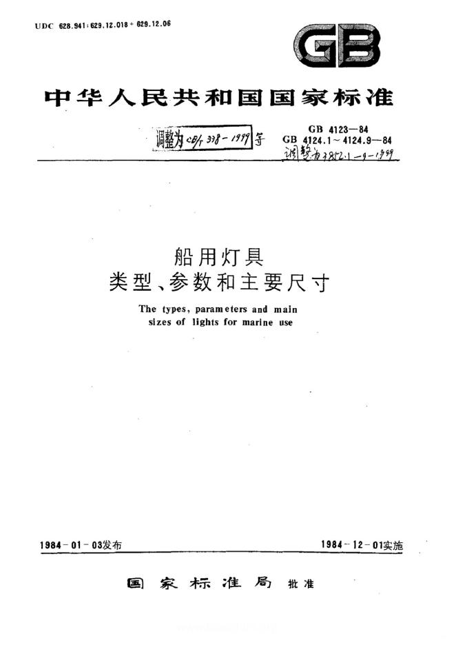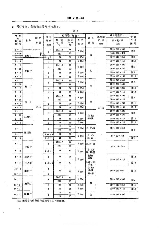 CB/T 338-1999 船用电气号灯类型、参数和主要尺寸