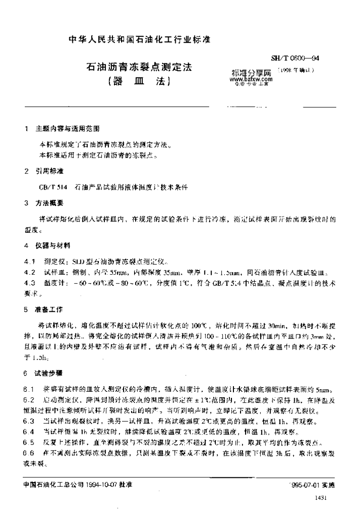 SH/T 0600-1994 石油沥青冻裂点测定法(器皿法)