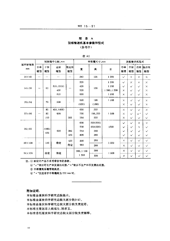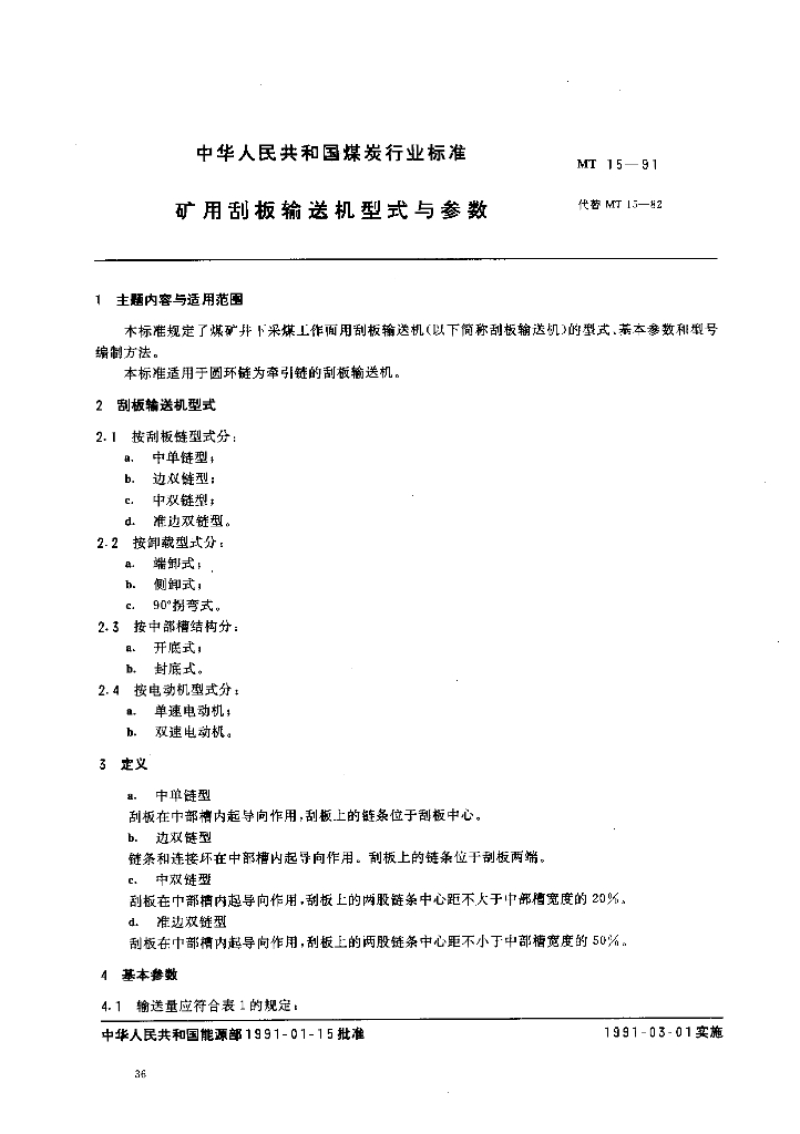 MT 15-1991 矿用刮板输送机型式与参数