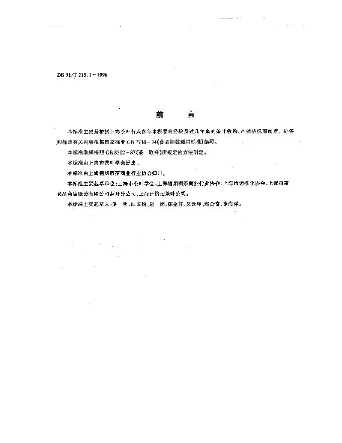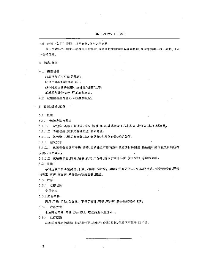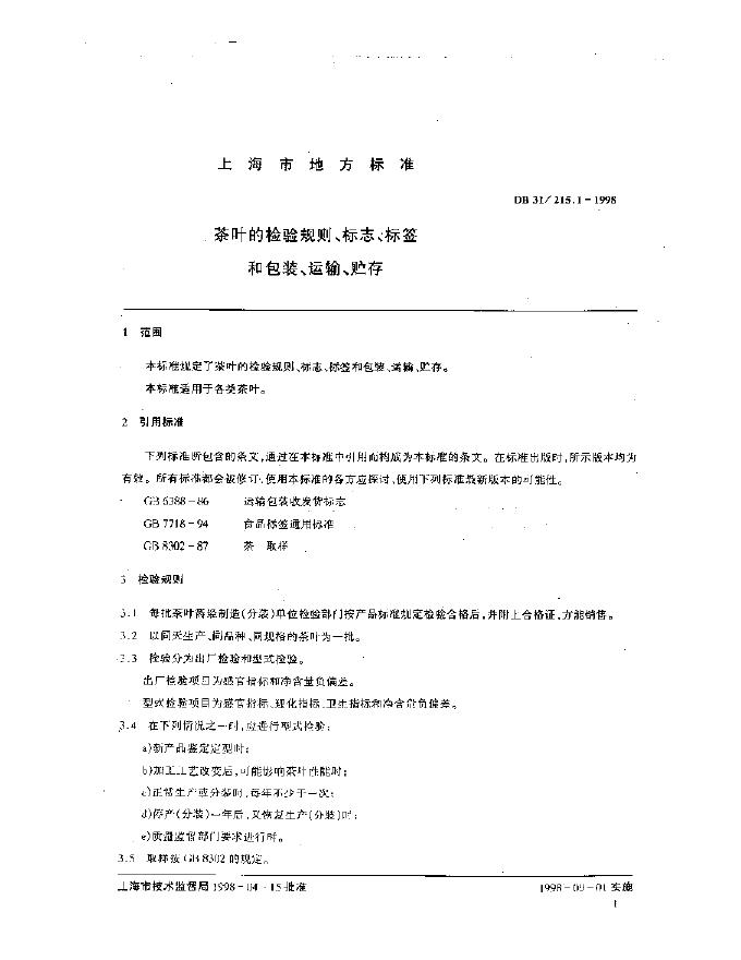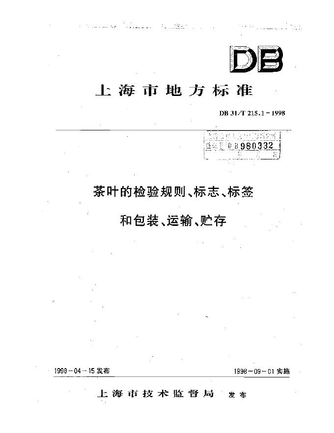 DB31/T 215.1-1998 茶叶的检验规则,标志,标识和包装,运输,储存