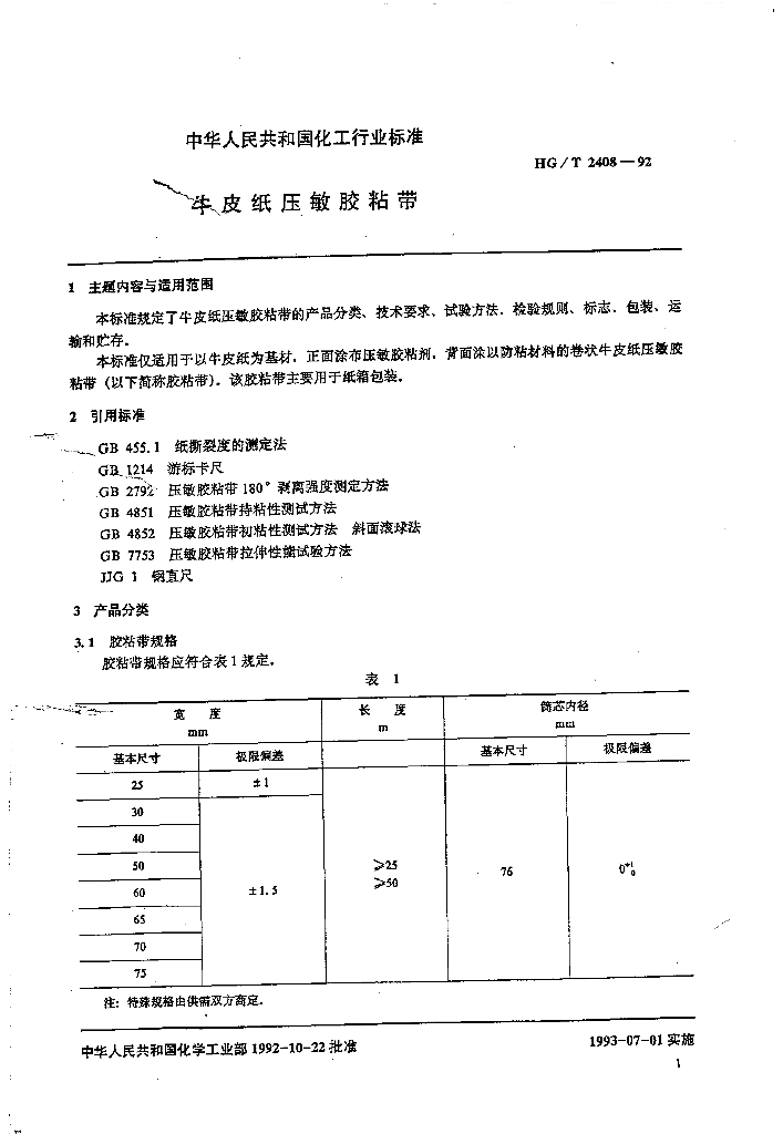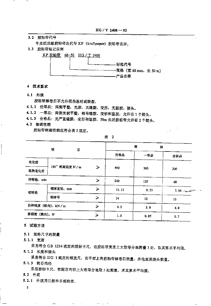HG/T 2408-1992 牛皮纸压敏胶粘带