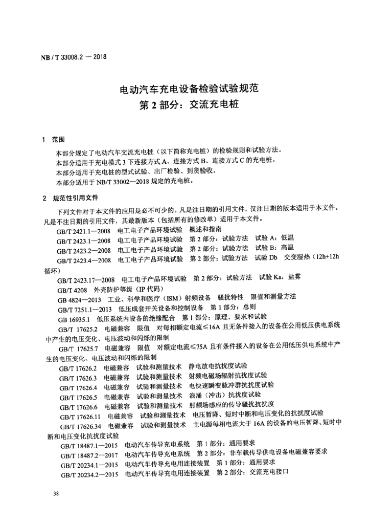 NB/T 33008.2-2018 电动汽车充电设备检验试验规范 第2部分:交流充电桩