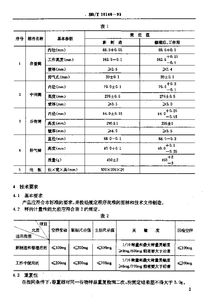 SB/T 10146-1993 HGT-1000型谷物容重器(LS/T 3701-1993)