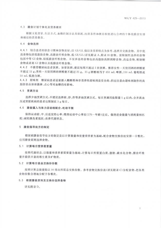 WS/T 429-2013 成人糖尿病患者膳食指导