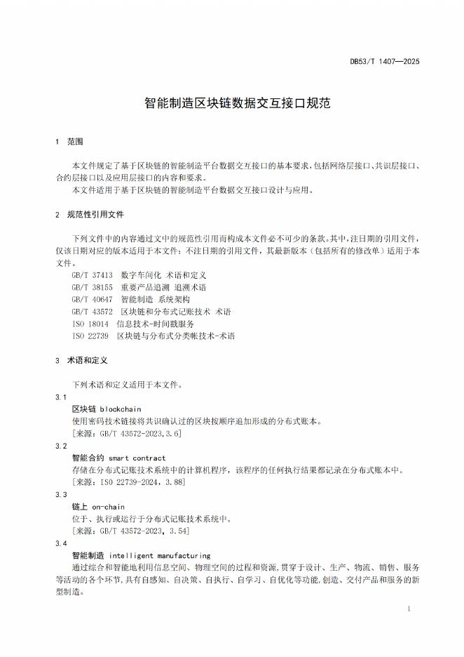 DB53/T 1407-2025 智能制造区块链数据交互接口规范