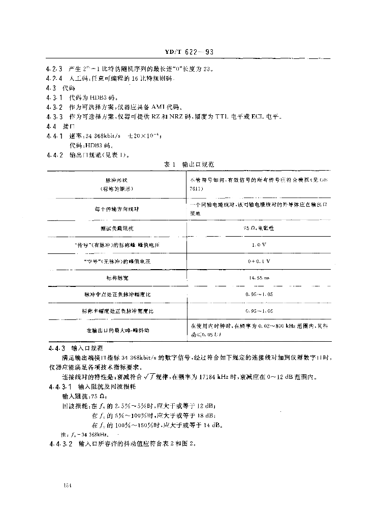 YD/T 622-1993 34 368kbit/s 误码分析仪技术条件
