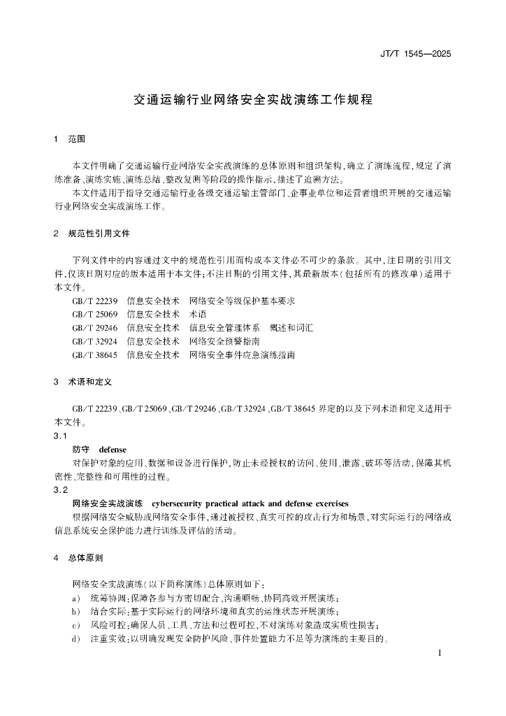 JT/T 1545-2025 交通运输行业网络安全实战演练工作规程