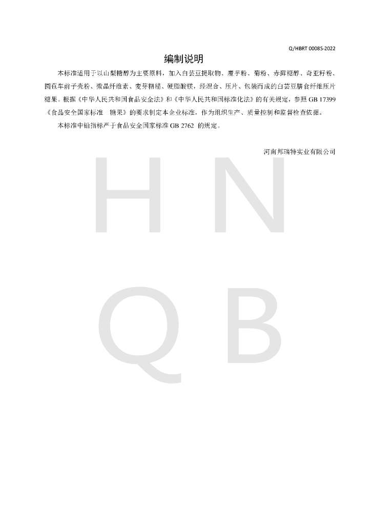 Q/HBRT 0008S-2022 白芸豆膳食纤维压片糖果
