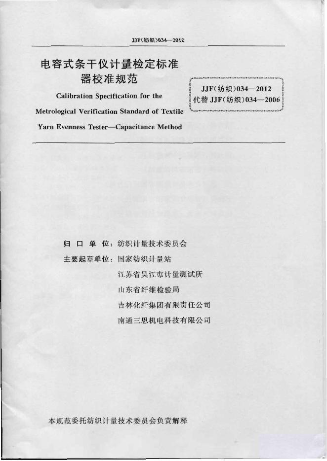 JJF(纺织)034-2012 电容式条干仪计量检定标准器校准规范