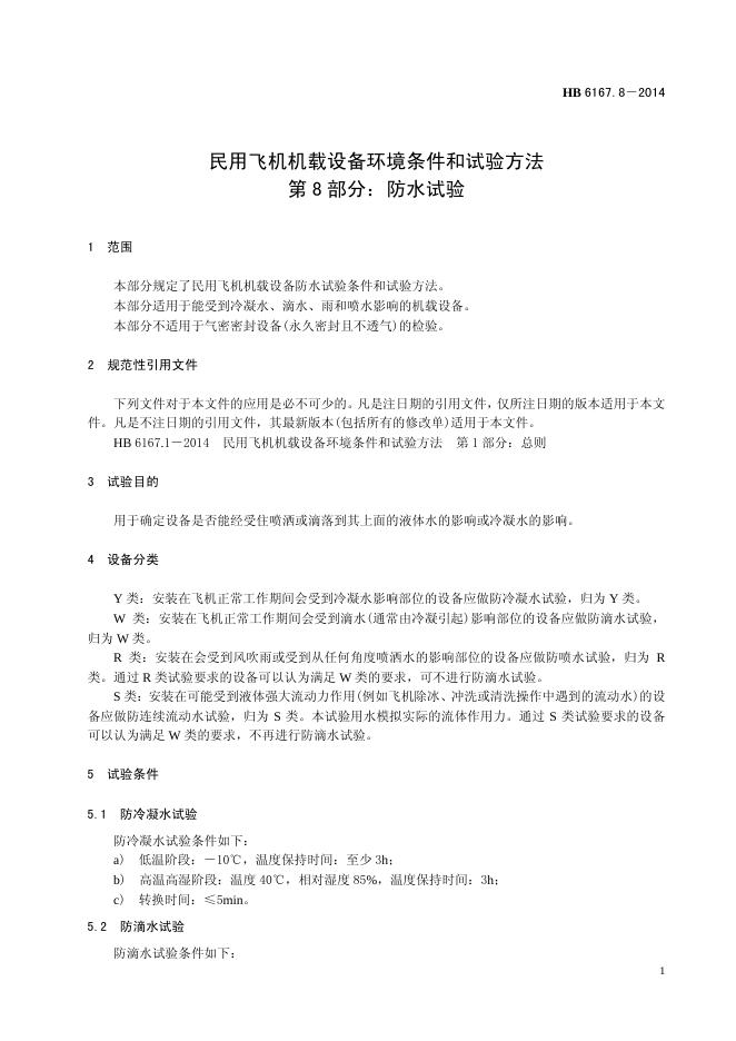 HB 6167.8-2014(2017) 民用飞机机载设备环境条件和试验方法 第8部分:防水试验