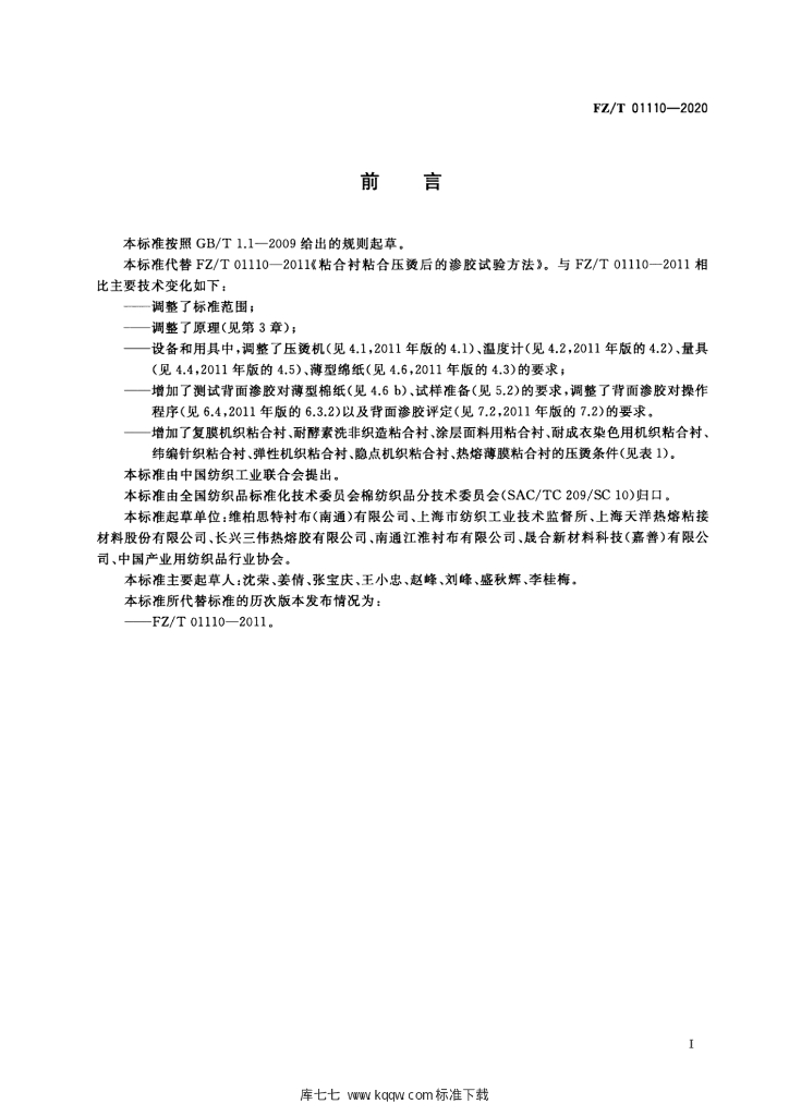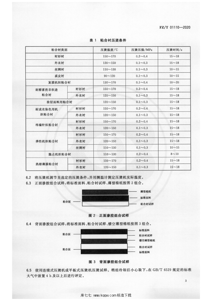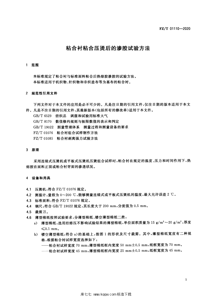 FZ/T 01110-2020 粘合衬粘合压烫后的渗胶试验方法