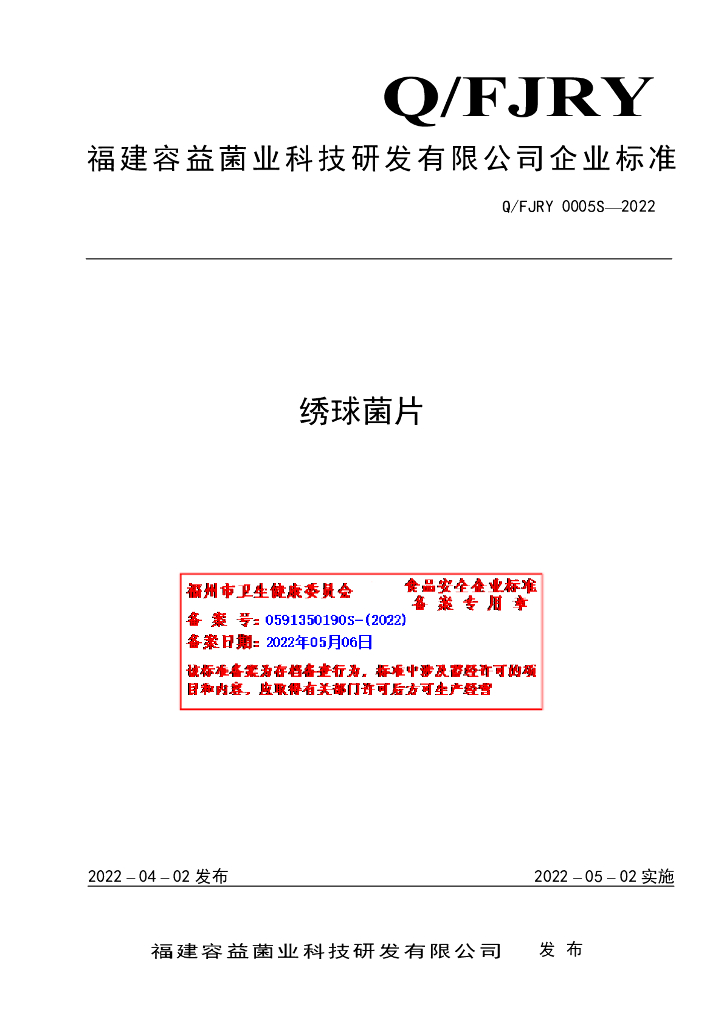 Q/FJRY 0005S-2022 绣球菌片