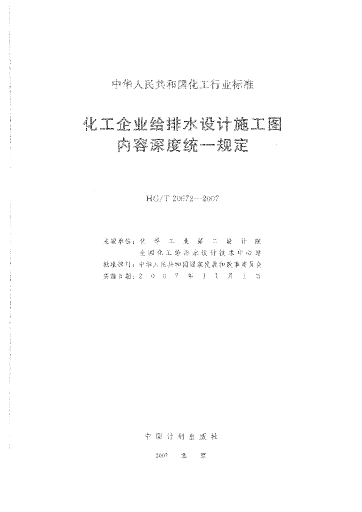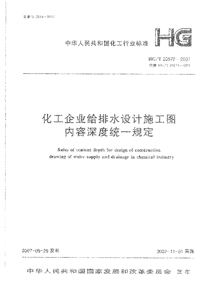 HG/T 20572-2007 化工企业给排水设计施工图内容深度统一规定