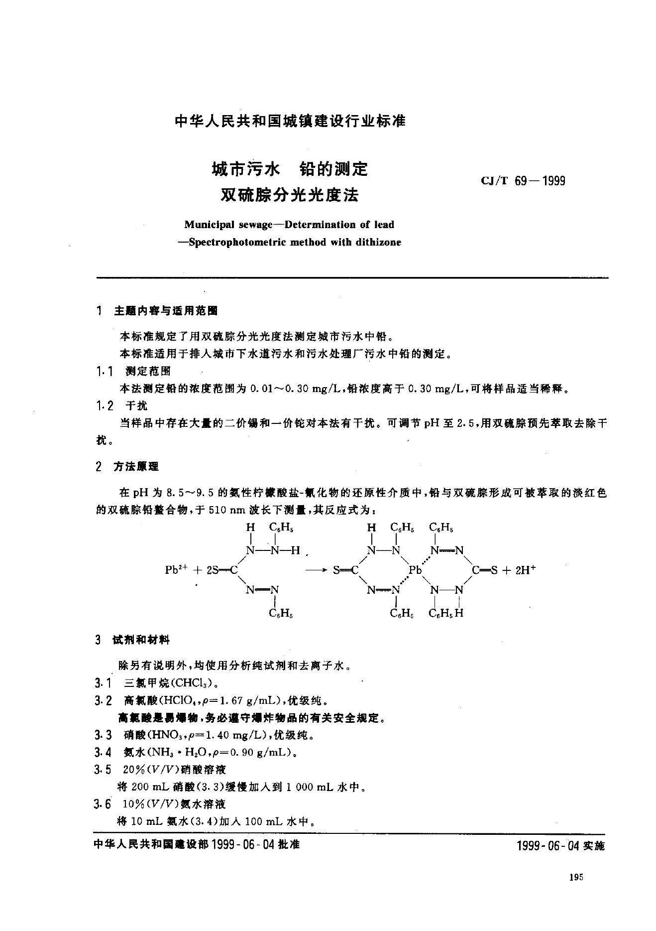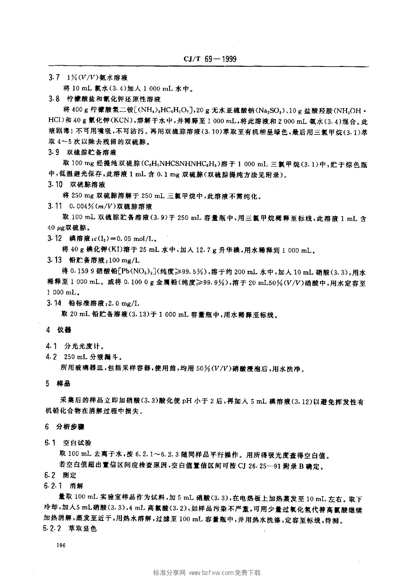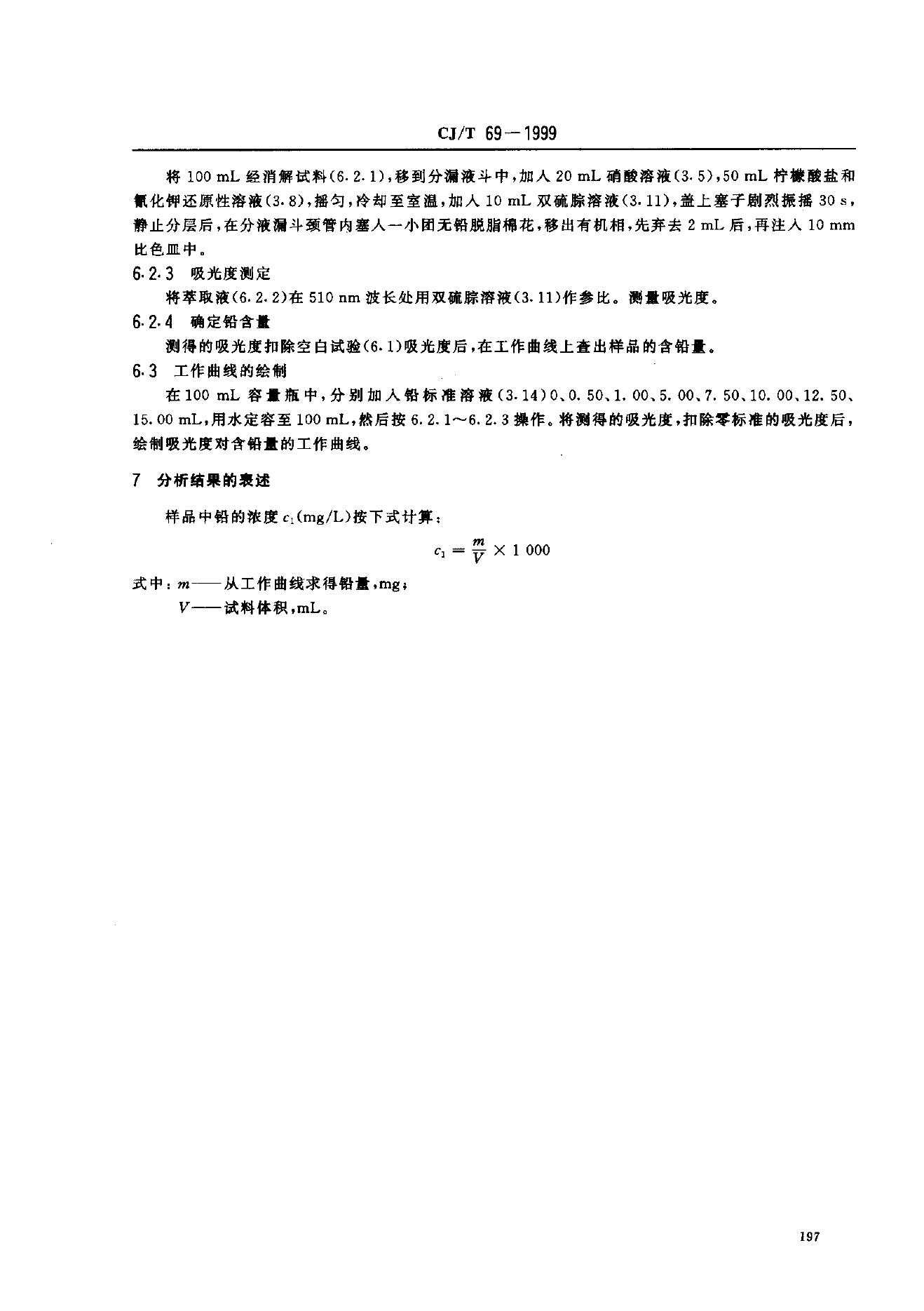 CJ 26.19-1991 城市污水水质检验方法标准 铅的测定 双硫腙分光光度法