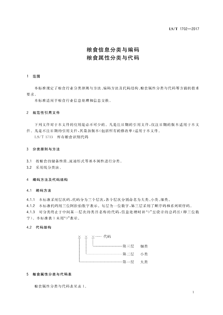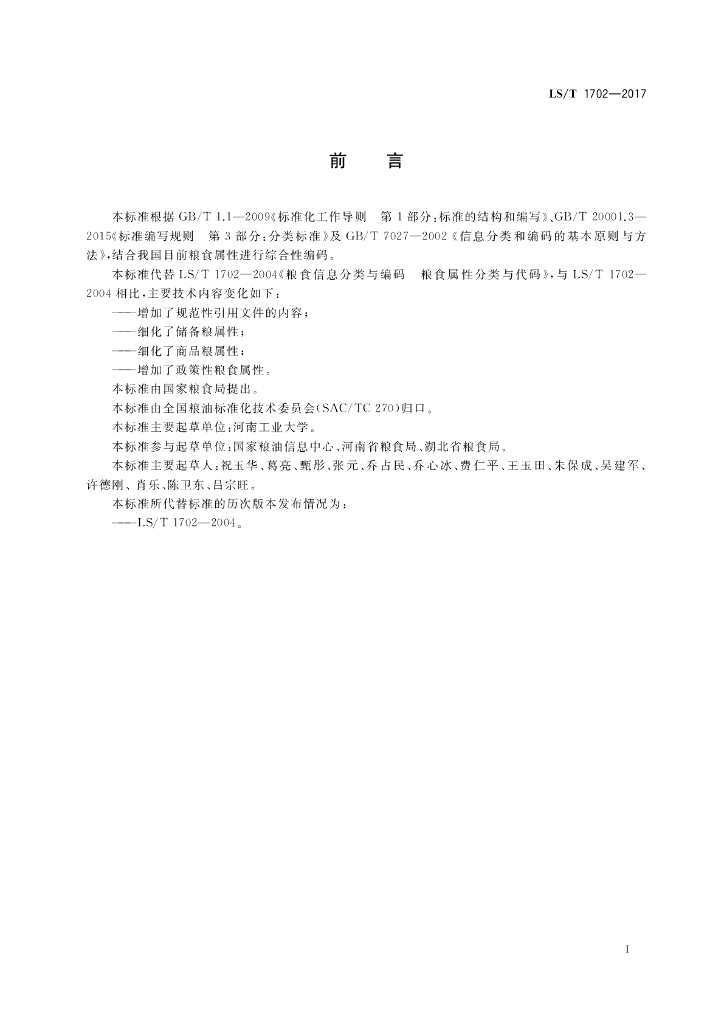 LS/T 1702-2017 粮食信息分类与编码 粮食属性分类与代码