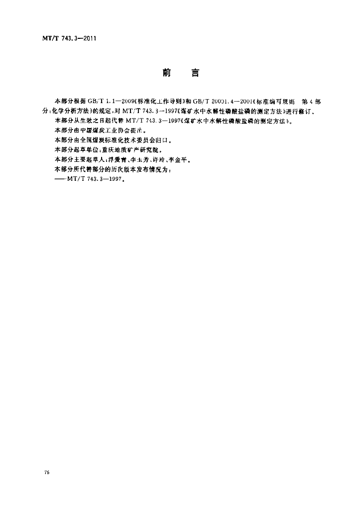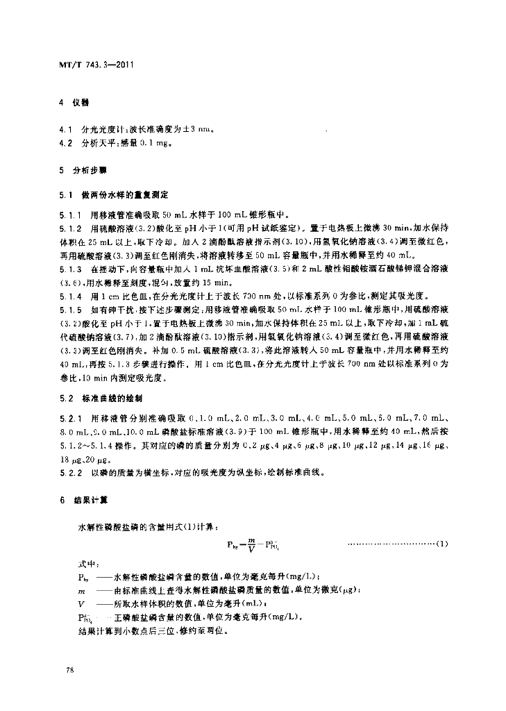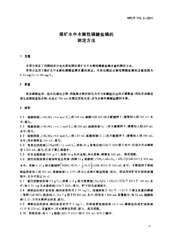 MT/T 743.3-2011 煤矿水中水解性磷酸盐磷的测定方法