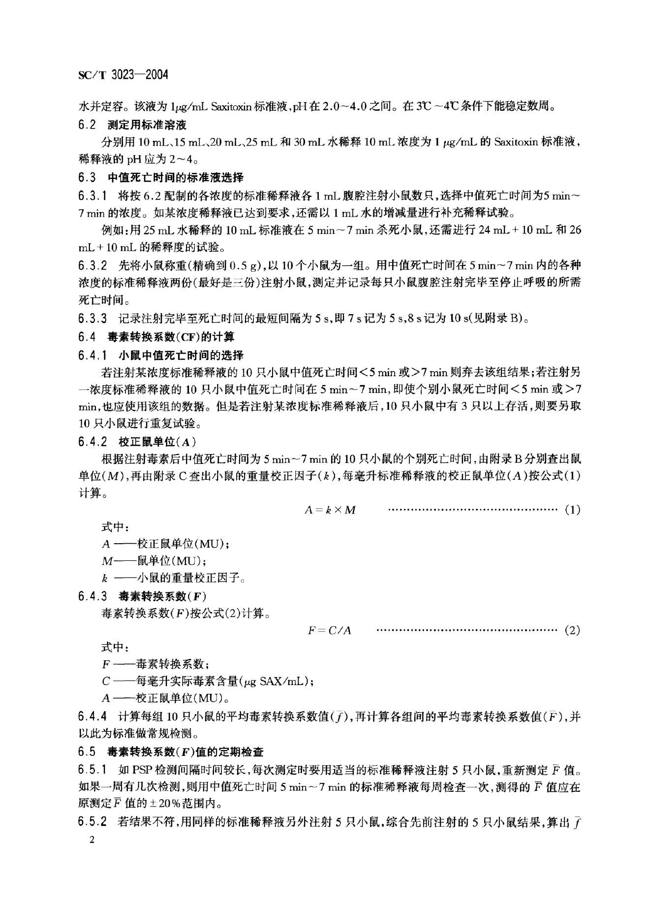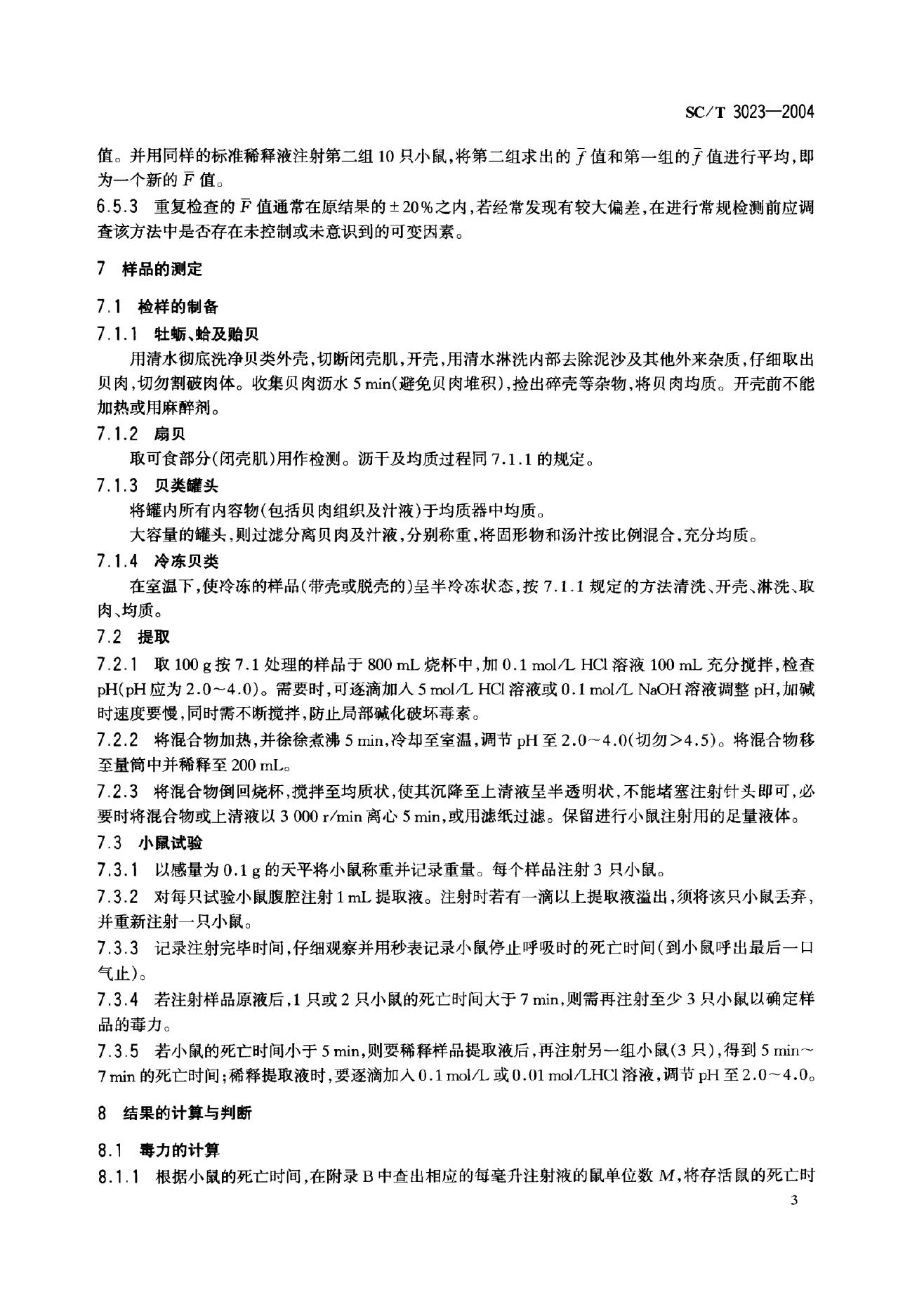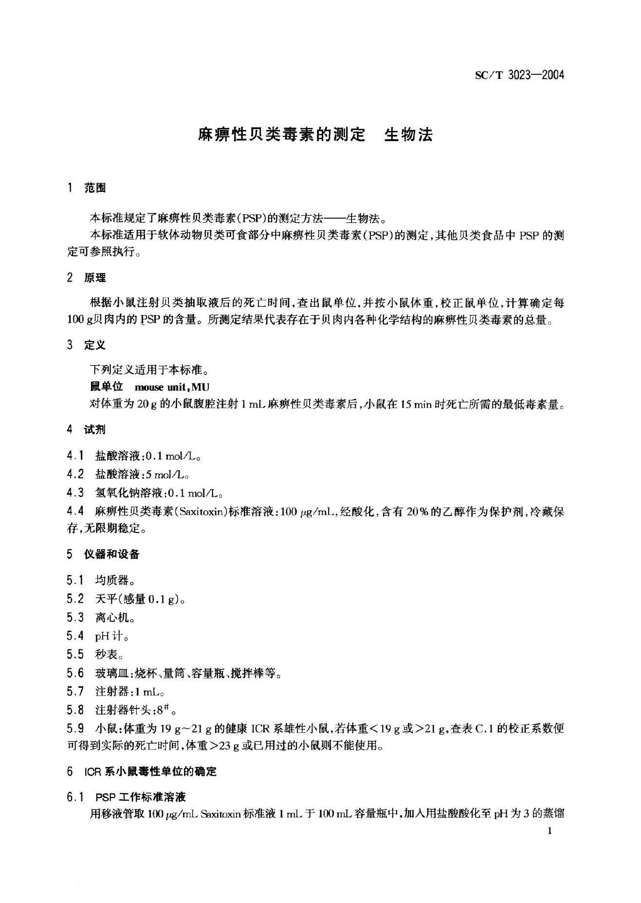 SC/T 3023-2004 麻痹性贝类毒素的测定 生物法