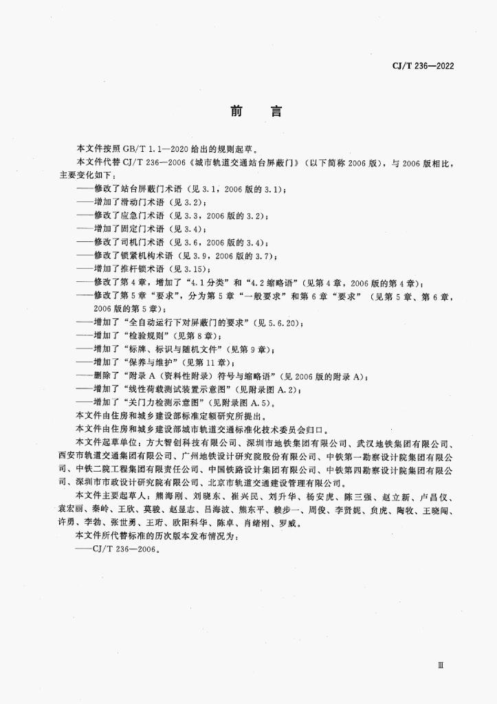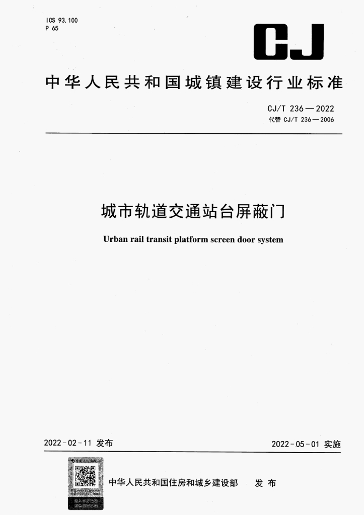 CJ/T 236-2022 城市轨道交通站台屏蔽门