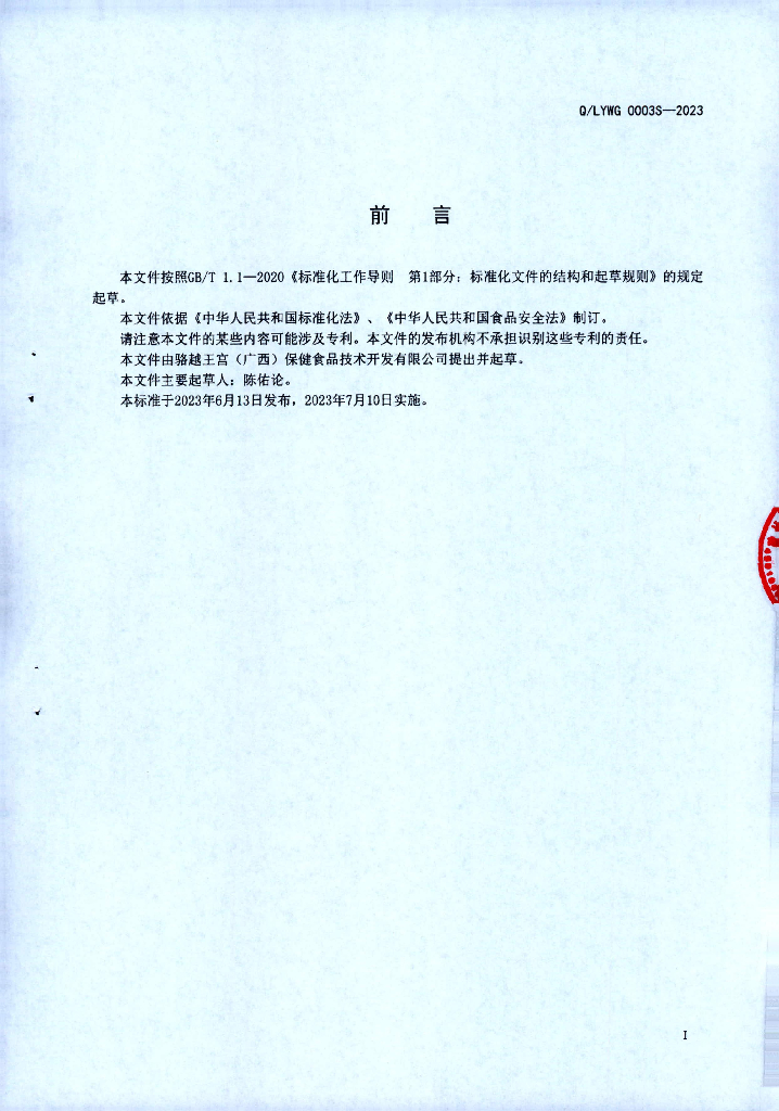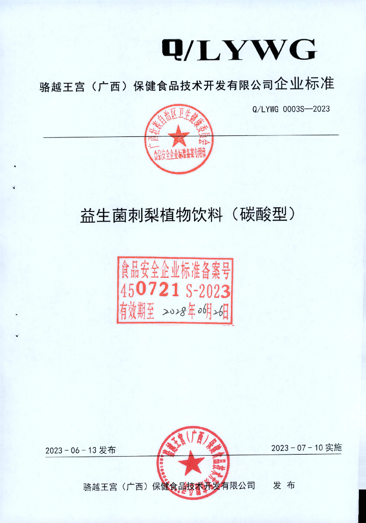 Q/LYWG 0003S-2023 益生菌刺梨植物饮料(碳酸型)