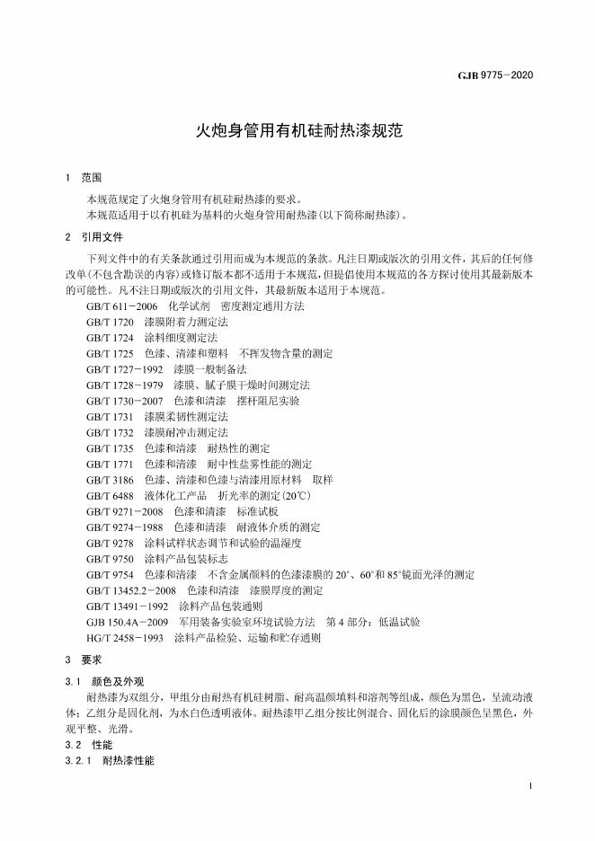 GJB 9775-2020 火炮身管用有机硅耐热漆规范