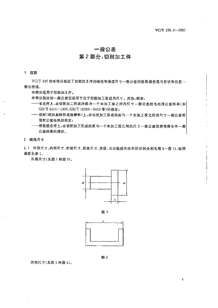 YC/T 235.2-2007 一般公差 第2部分:切削加工件