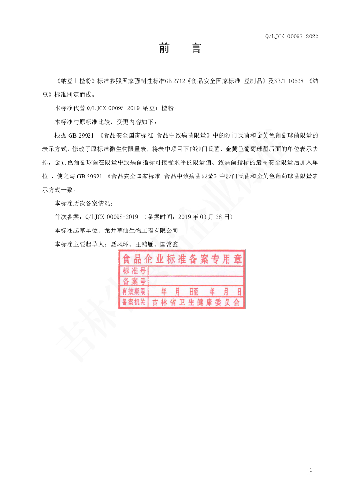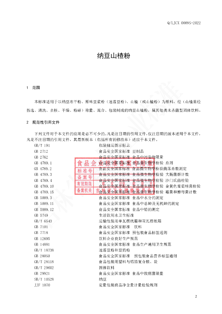 Q/LJCX 0009S-2022 纳豆山楂粉