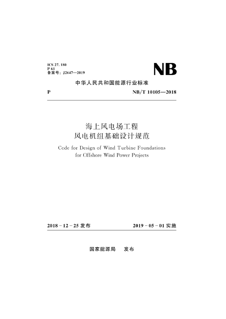 NB/T 10105-2018 海上风电场工程风电机组基础设计规范