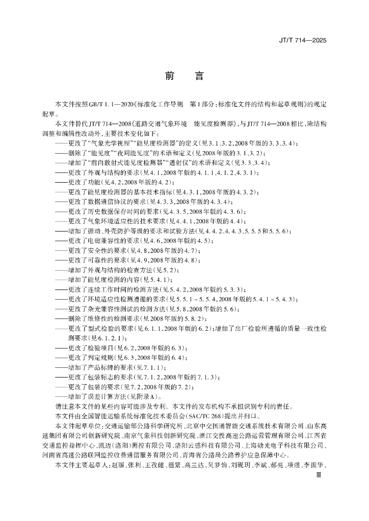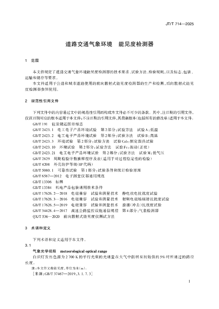 JT/T 714-2025 道路交通气象环境 能见度检测器